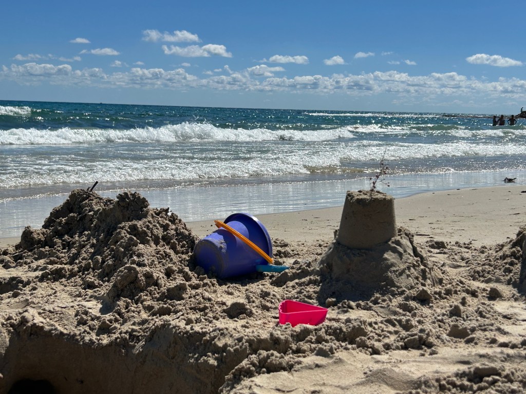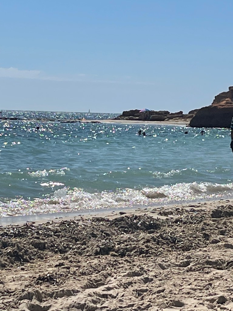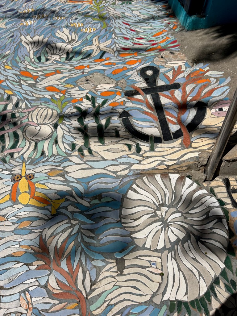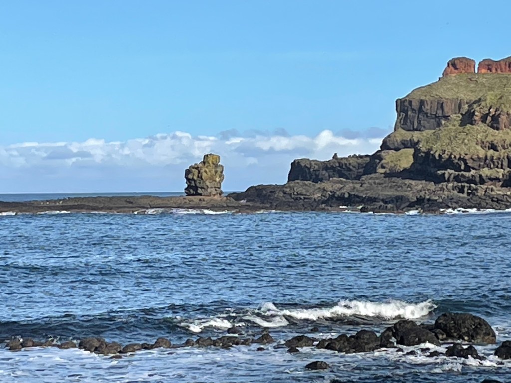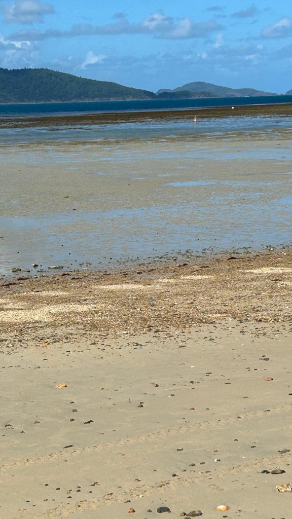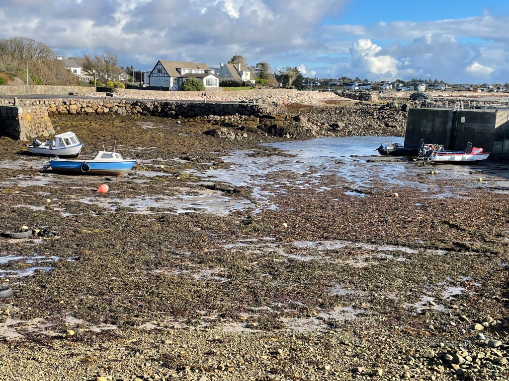 We then drove to Spidall, a nearby town where Mairin said they had a very good Craft Village which we visited. We also stopped at a pharmacy to buy some relief for our coughs. When we walked to the waterfront, the tide was out.