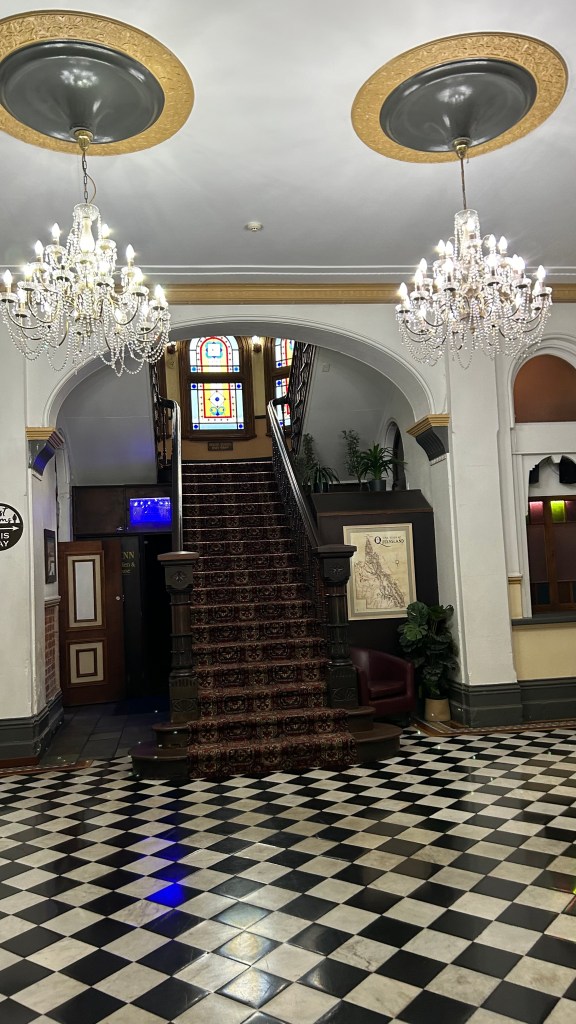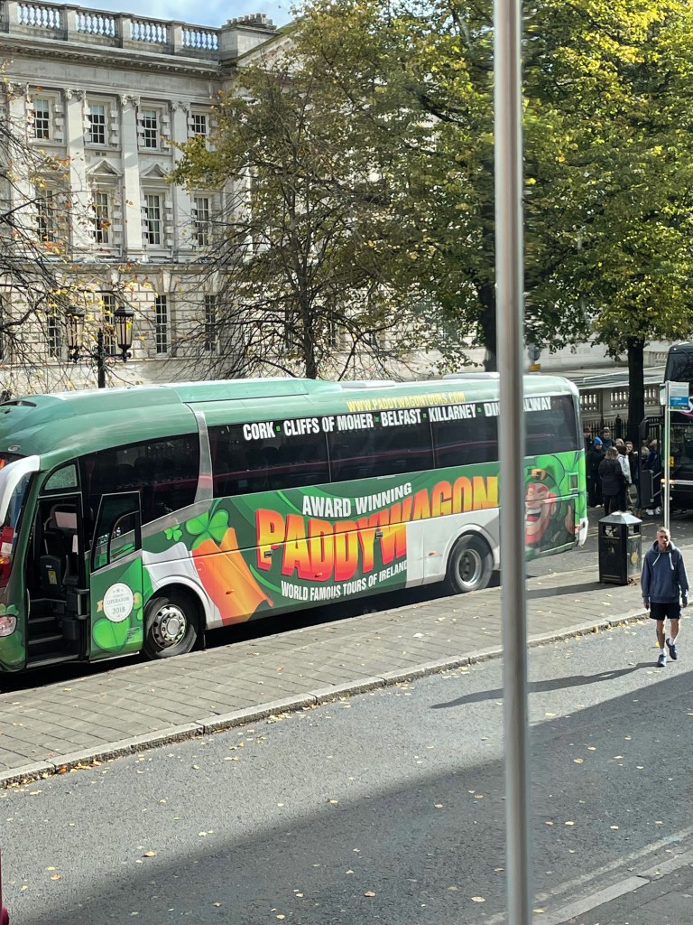 From the Rock of Cashel, it was a long run into Dublin where Vincent let us off on the taxi stand on the south side of the river in the rain. We took the taxi to Harcourt Suites which the driver could find in the dark as it turned out there was no office for the room, only an office serving several accommodations. The room was very Victorian and dark. We had a hard time finding a place for dinner as the pubs were full of partying young people on Saturday night.