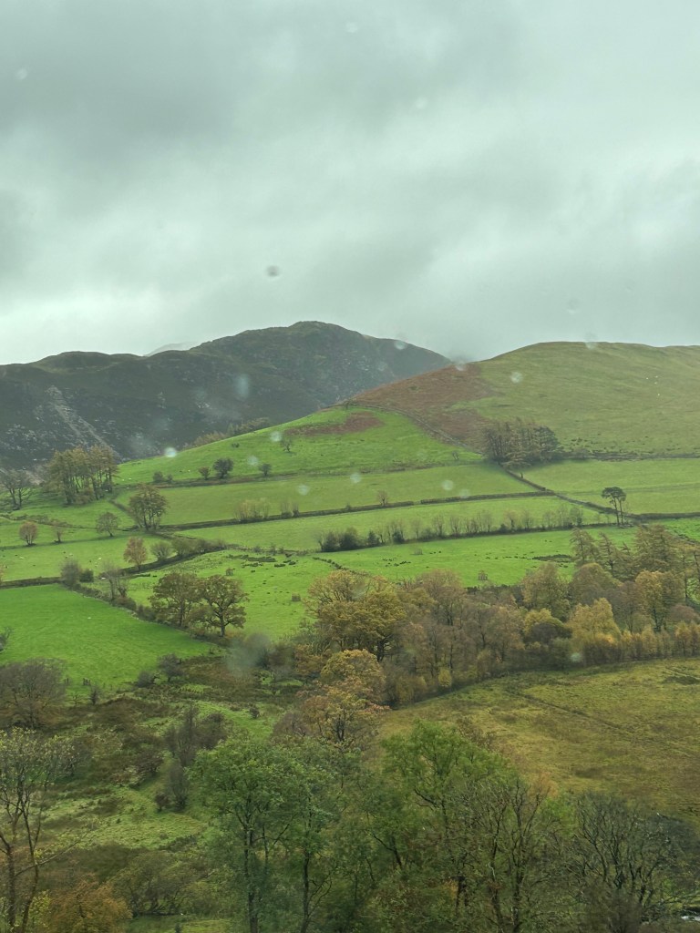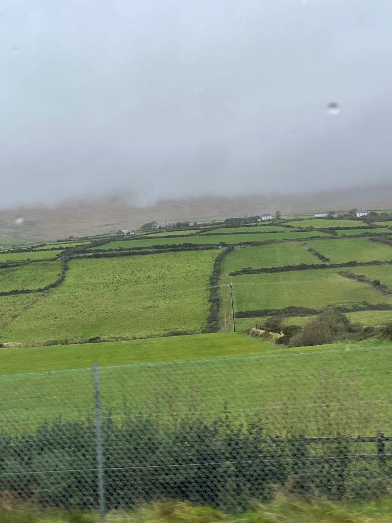Ireland is called the Emerald Isle for good reason: it rains so everything is green and there is much farmland with sheep and cattle and grain crops in the north and east. The west and south tends to be more rocky.