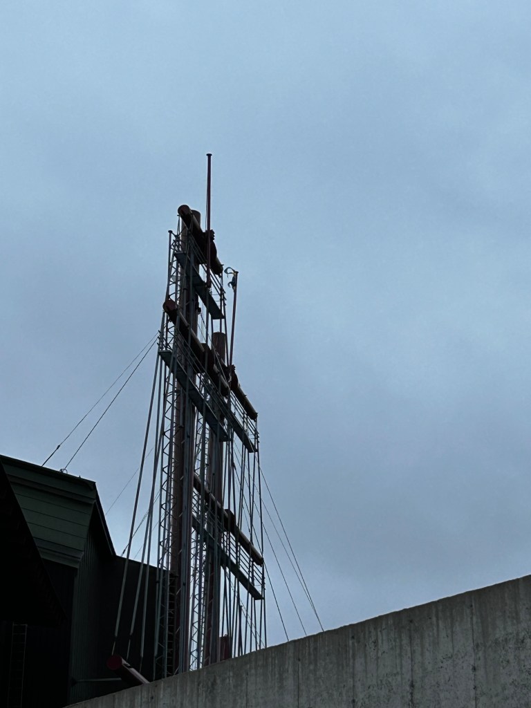 The narrow gauge rails brought ore from the mine and carried waste rock to the dump. The large timbers were packed in from the rim.
