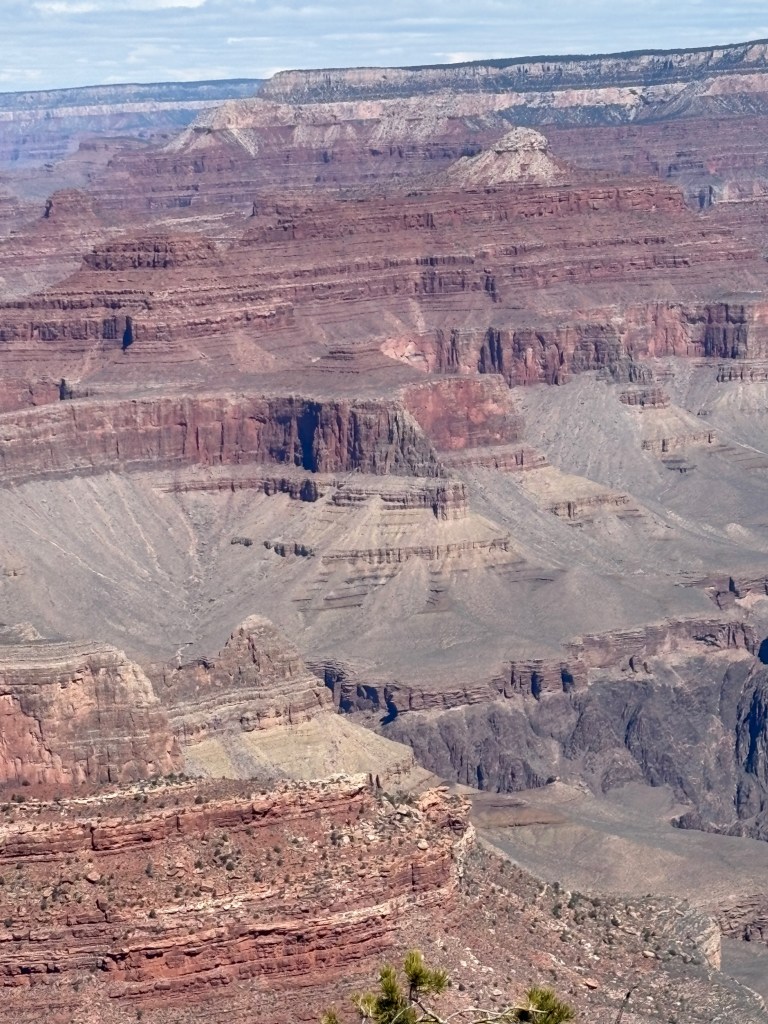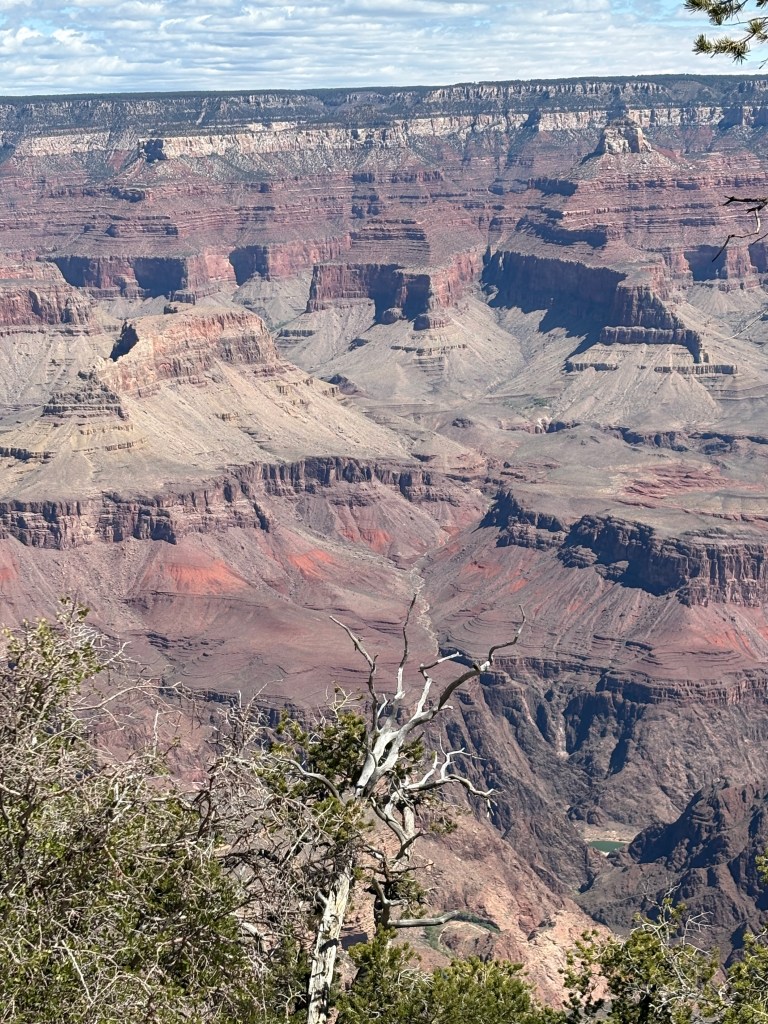 It was 0 degrees when we were picked up at 7:45 by Keaton, the guide, of Canyon Dave’s Tours; on the way we picked up a couple and their adult son in Flagstaff and another couple in Williams on the way to the Grand Canyon. Keaton shared his geological and historical knowledge of the area and of the Grand Canyon non-stop on the hour and a half trip. The first glimpse was awesome.