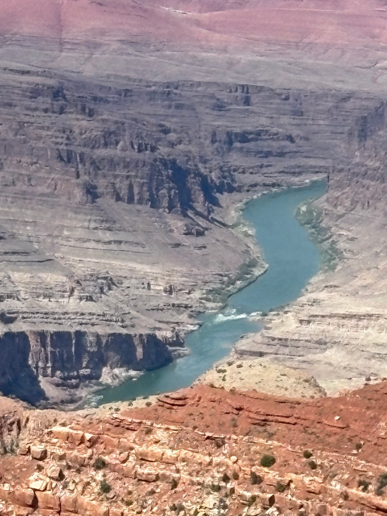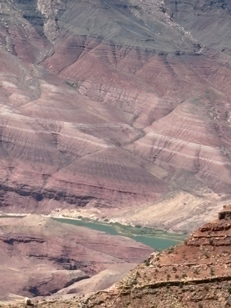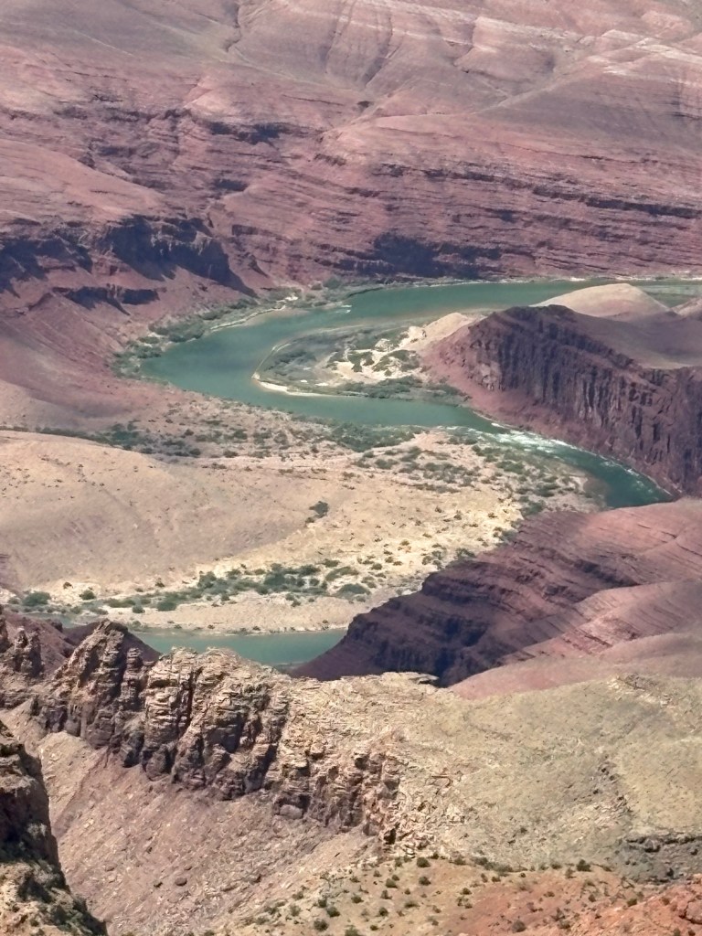 The Colorado River, like liquid sandpaper, uses the sediments it carries to carve its canyons. Driven by weather and climate, the Colorado deepens its course. The river gathers rain and snowmelt from the Rocky Mountains. Swollen by springtime runoff and summer storms, the Colorado’s muddy waters churn. Silt, sand, and cobbles grind against each other and against bedrock channels. Its water carries the abrasive load downstream, ultimately surrendering it to the Gulf of California. Empowered by time over 5 million years worth-the river does what gravity demands