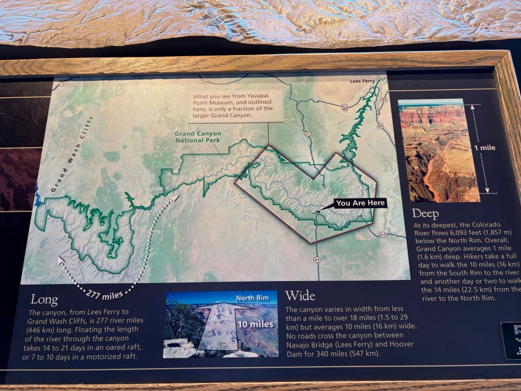 What you see from Yavapai Point Museum, and outlined here, is only a fraction of the larger Grand Canyon.