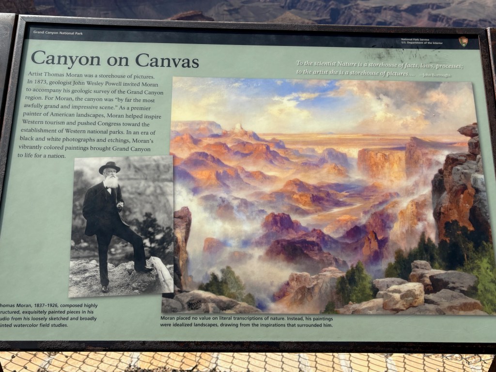 Artist Thomas Moran was a storehouse of pictures. In 1873, geologist John Wesley Powell invited Moran to accompany his geologic survey of the Grand Canyon region. For Moran, the canyon was “by far the most awfully grand and impressive scene.” As a premier painter of American landscapes, Moran helped inspire Western tourism and pushed Congress toward the establishment of Western national parks. In an era of black and white photographs and etchings, Moran’s vibrantly-coloured paintings brought Grand Canyon to life.