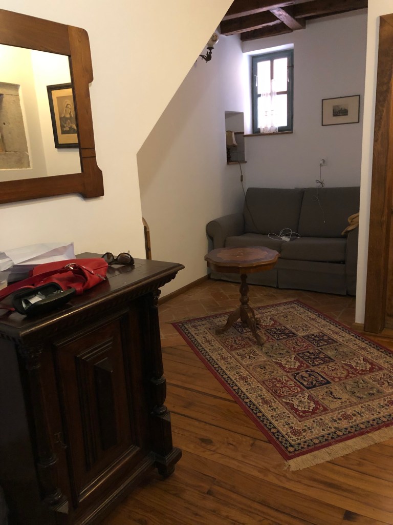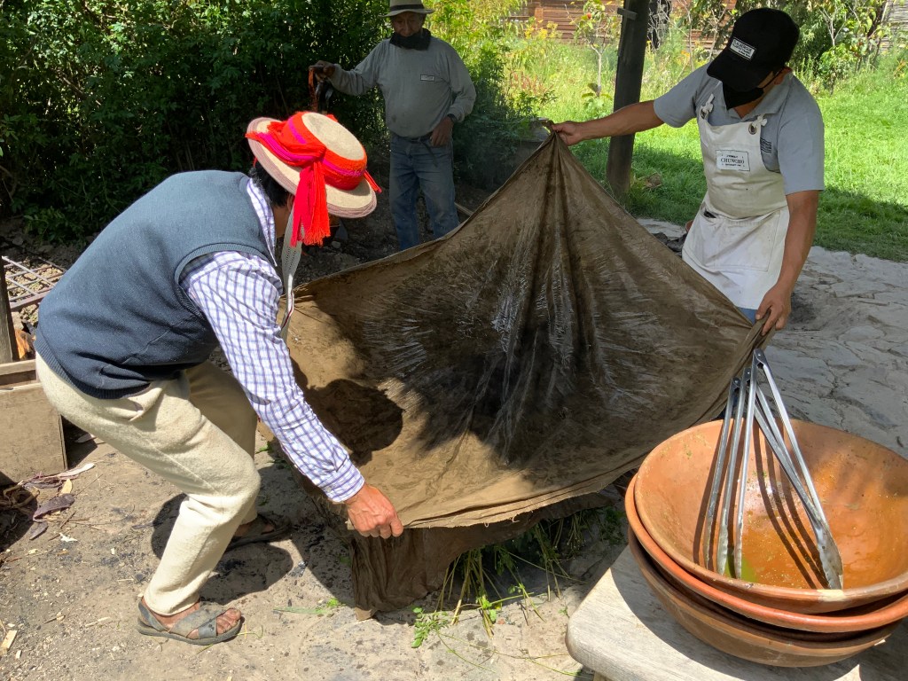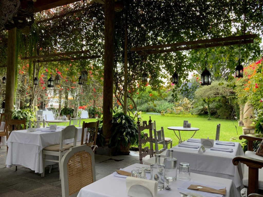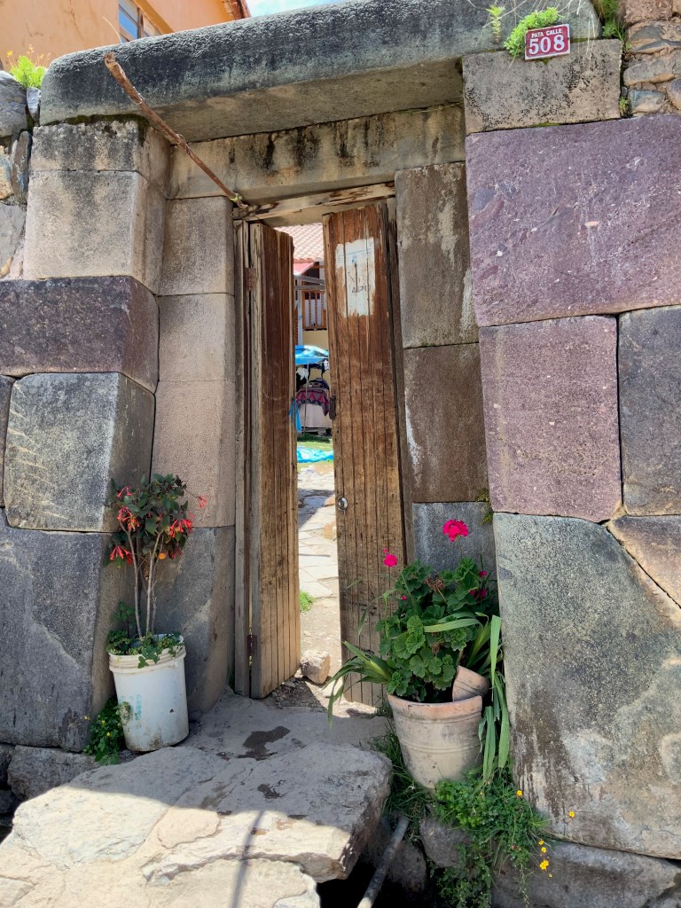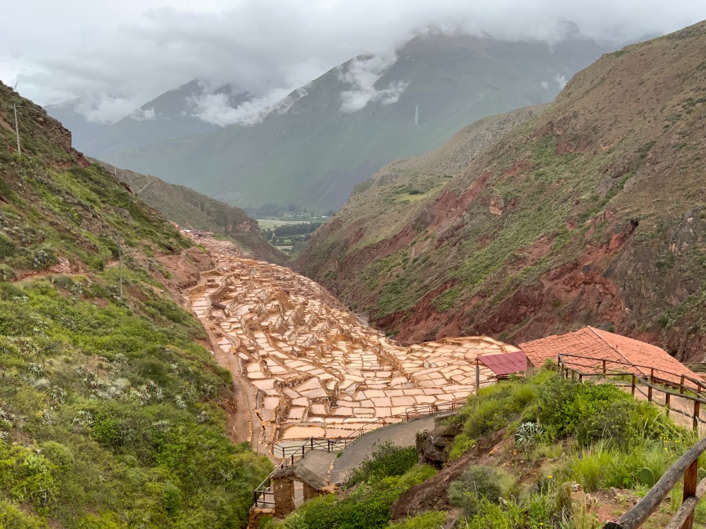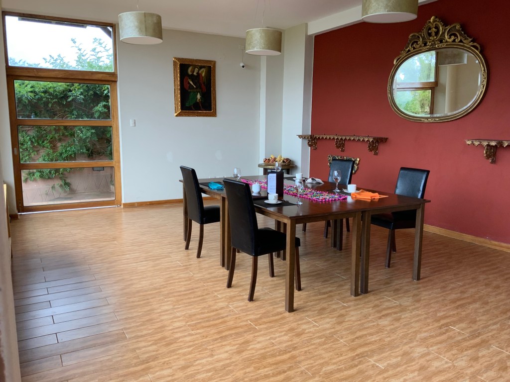 We had an excellent lunch in Maras. Aa newly renovated space through a door in a non-descript wall, we arrived at a private room prepared for the four of us. It was cold so I got my vest and shawl. It looked out on a garden and the mountains that on a sunny day would have been beautiful.