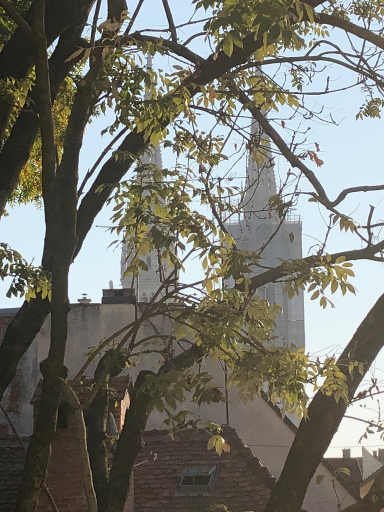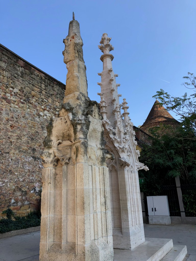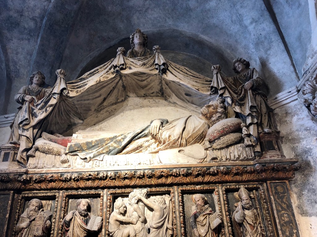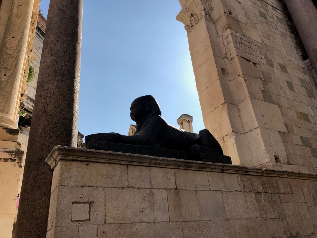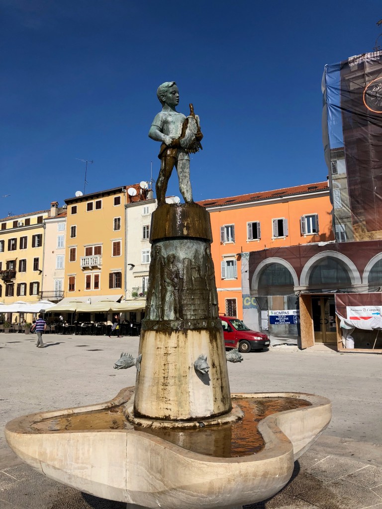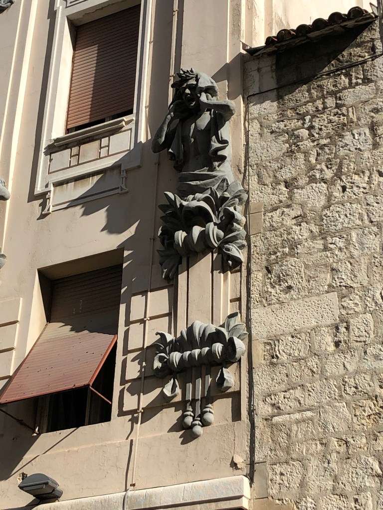 With the day to ourselves, we slept in, had breakfast at 9:30 am, walked the city centro on the pedestrian walkway and in a circuitous fashion (ie we got lost). Very near our hotel was this sculpture of a god listening to a goddess.