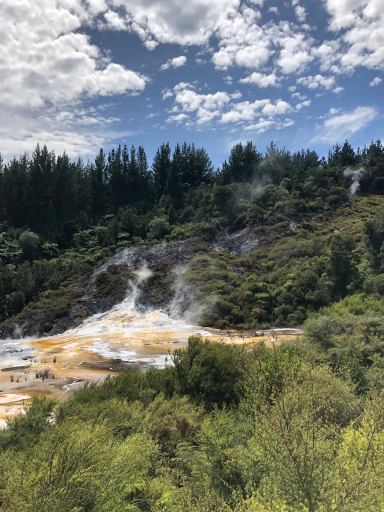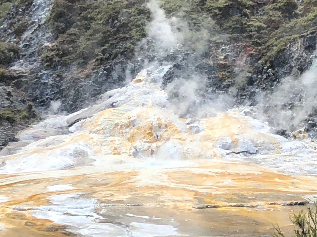 We walked the fields examining the geysers, steaming holes, and hot water. Nicholas told us of stories of tourists who put their hands in the hot water and even one in 2017 who fell in and later died of her burns. Now they have walls around the larger geysers but new ones keep developing outside the walls