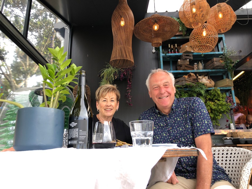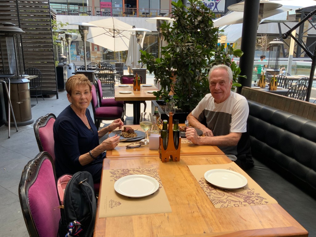 We had a fabulous lunch: Bill had fish and I had beefsteak and both were awesome but way too much food. And then we ate the great flan dessert! Bill bought an aerator and a corkscrew.