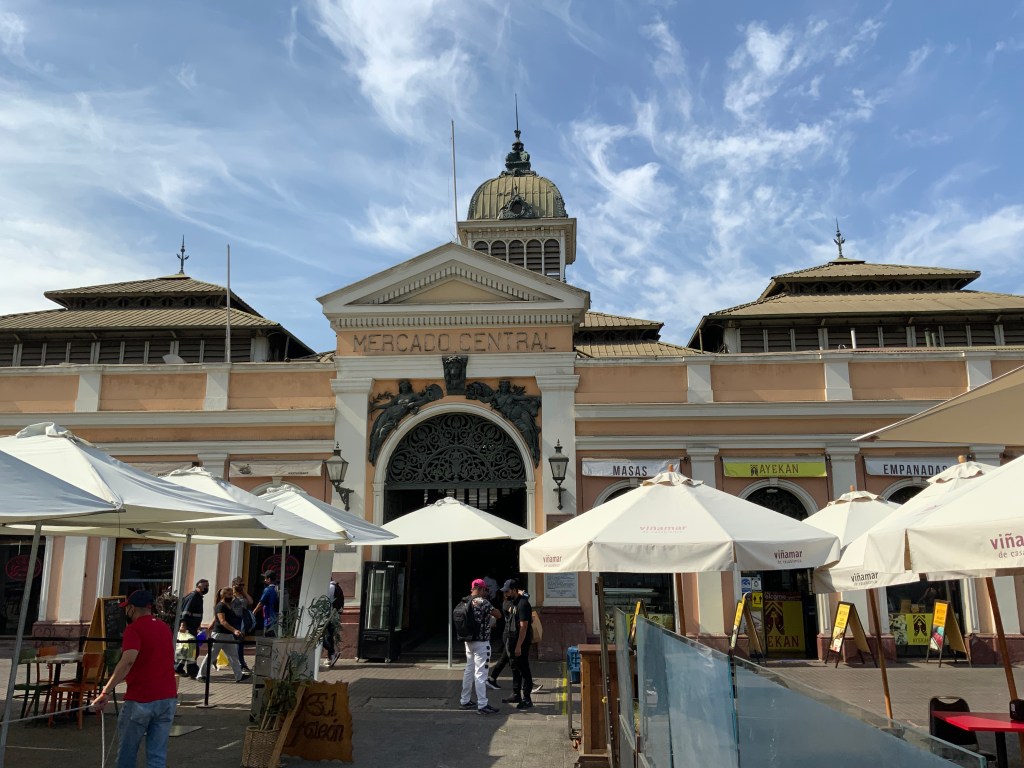 Afterwards, we headed out to the “Central Market”, which was declared a national historic monument and where all kinds of fish and seafood from the Pacific Ocean are sold. Throughout the tour, Alejandro talked with different shop employees to learn about the local products and their uses in the typical Chilean cuisine.