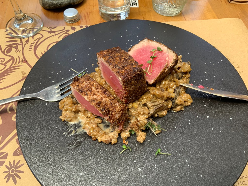 We had a fabulous dinner at Cicciolina: seafood risotto for me and Chicken Pappardelle for Bill, plus a lovely Chilean carmenere.
