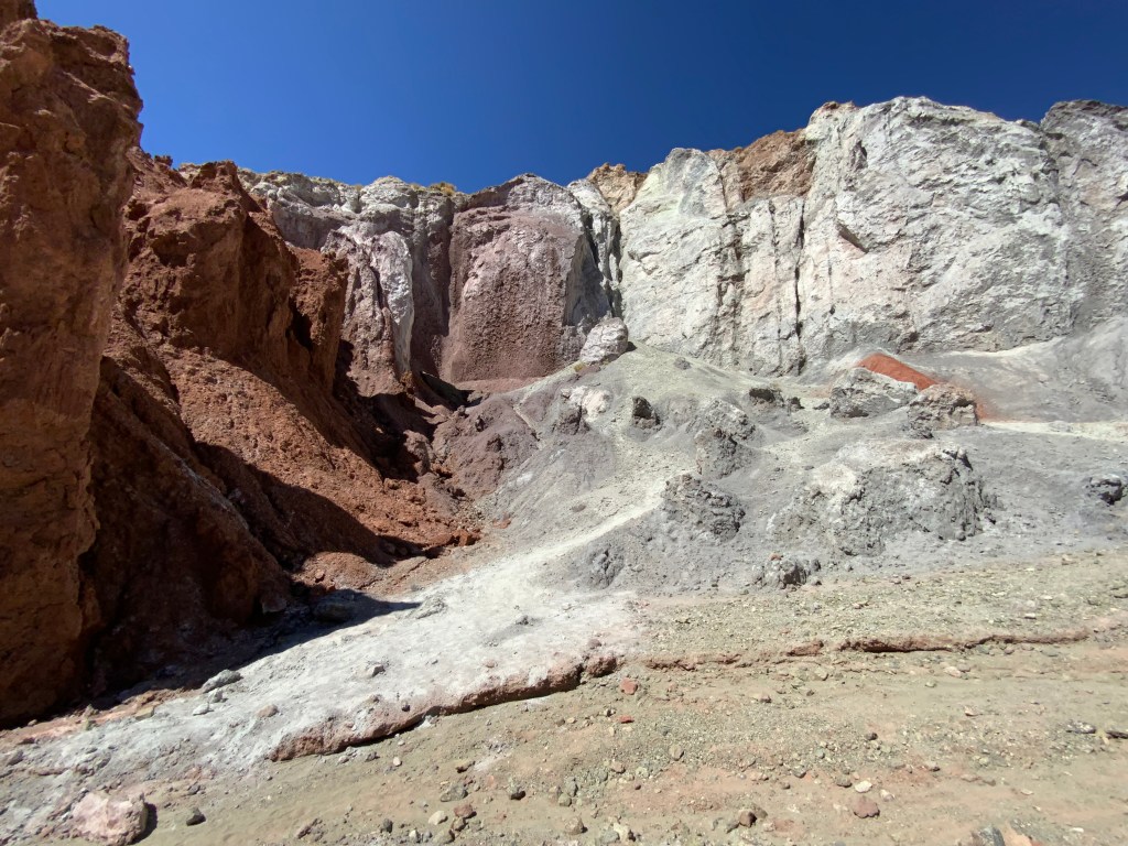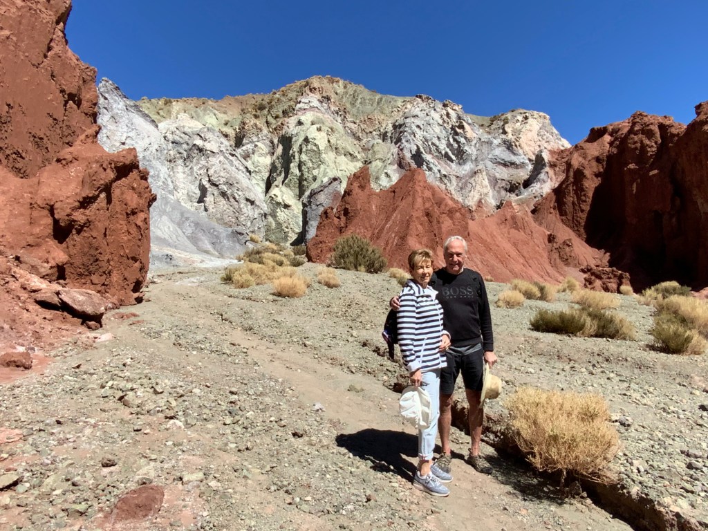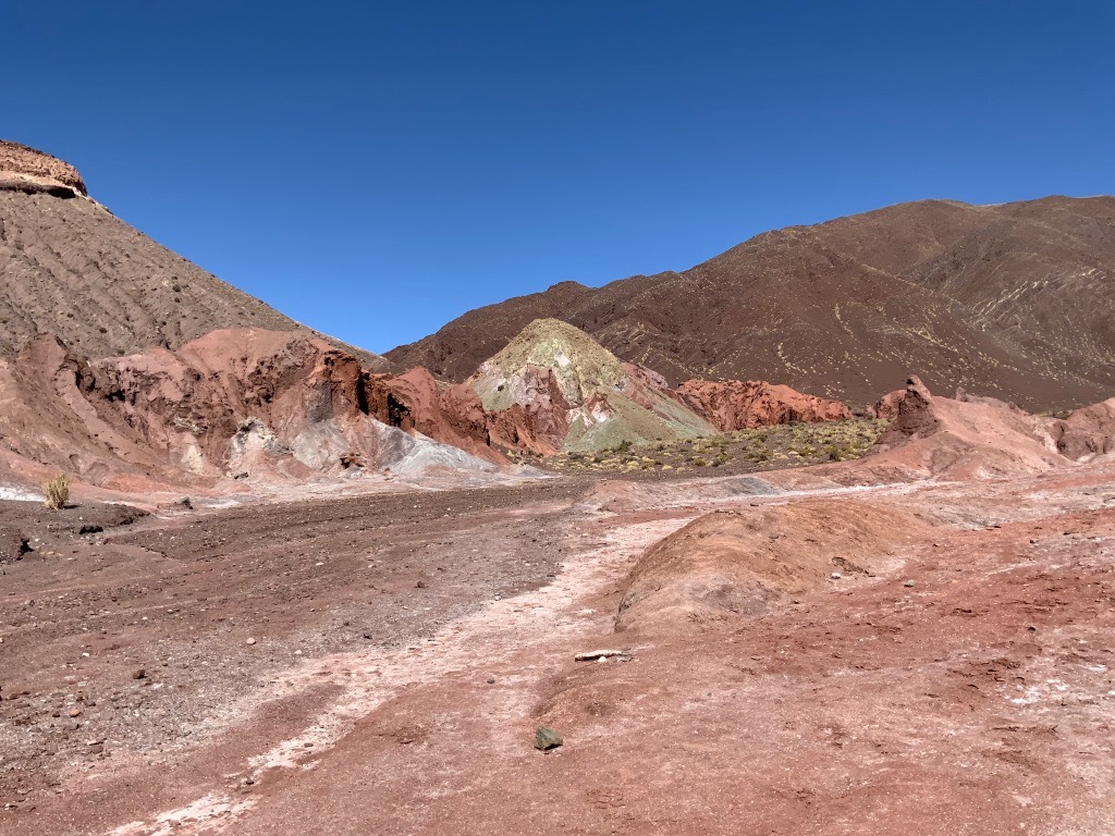 We hiked through the terraine. The colours of the mountains and hills are caused by the various minerals washing down from the mountains.