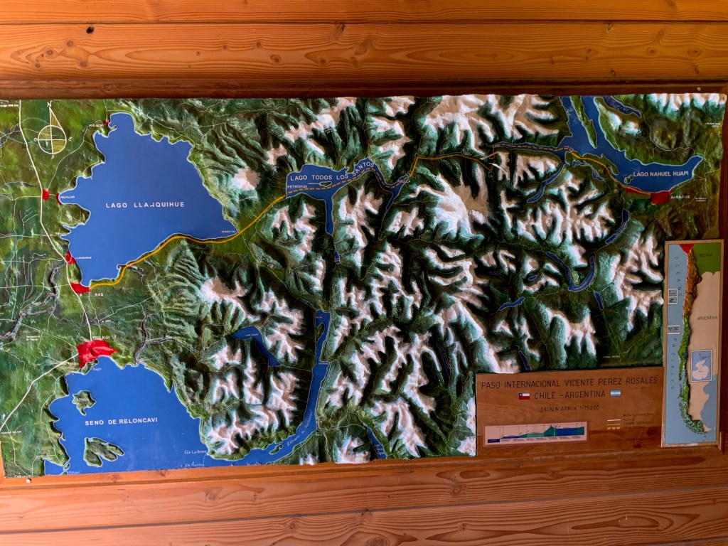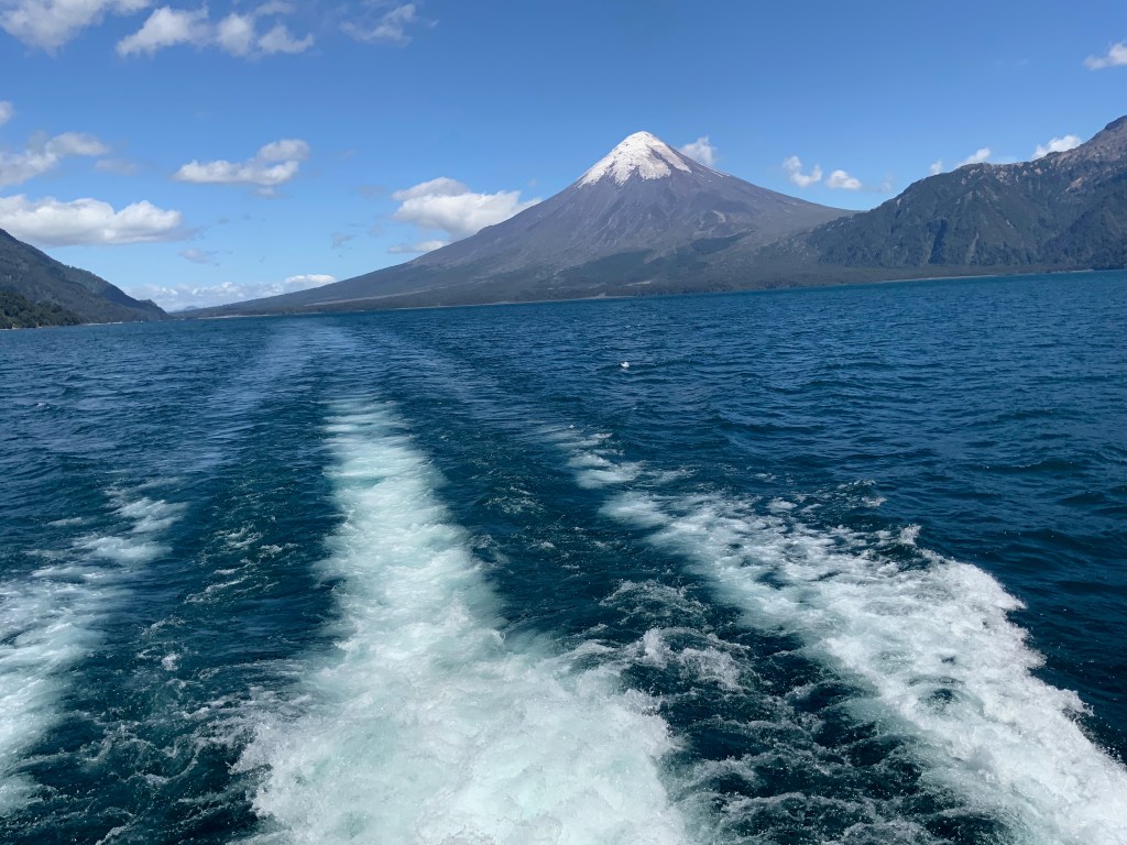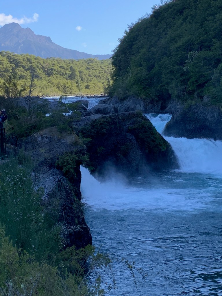 We passed the town of Ensenada about 45 km east of Puerto Varas which was covered in ash from the eruption of Calbuco volcano in 2011. Once in the Vicente Pérez Rosales National Park we visited the Petrohué River Falls. Because Chileans are now able to travel, it was very busy even early in the day.