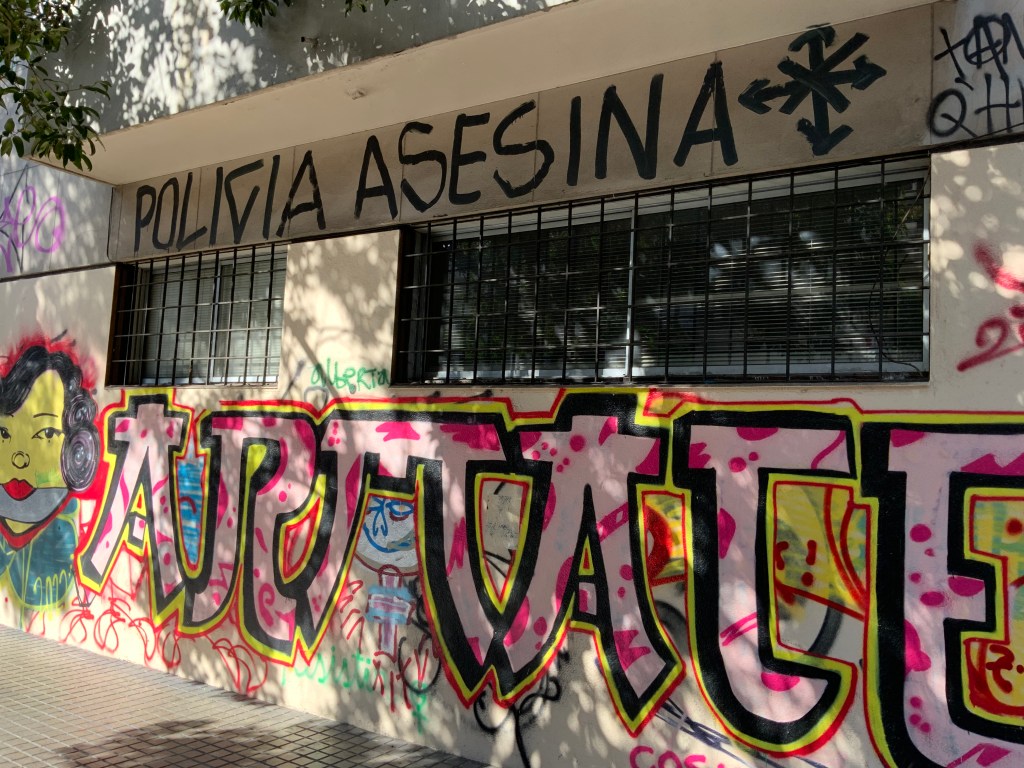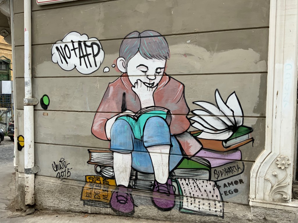 Alejandro told us about the riots of 2019 where huge crowds led by students rebelled against the regime (begun with Pinochet) demanding more rights and freedoms. The downtown buildings are covered with graffiti intended as a constant reminder of the riots until the new constitution is approved.