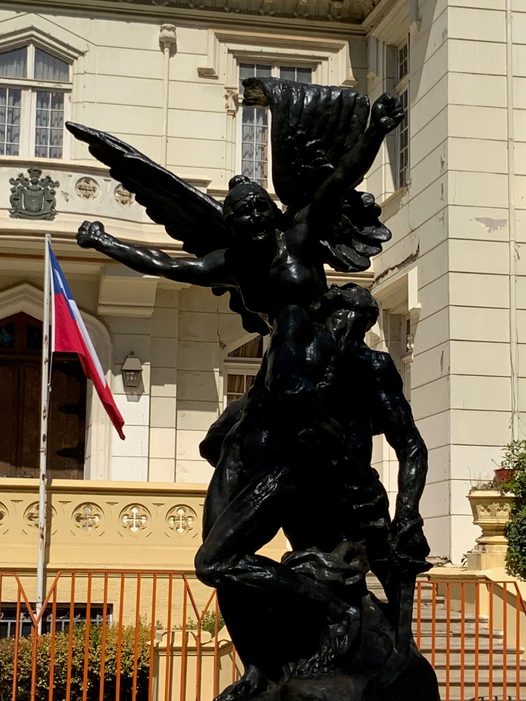 Finally, we went on the cable car where the rich and poor areas of the city were clearly visible and visited San Cristobal hill. We accessed lookout points that showcase the city and climbed to the statue of Mary, La Concepcion. Alejandro shared that Mary is a much more dominant figure in Catholicism in Chile.