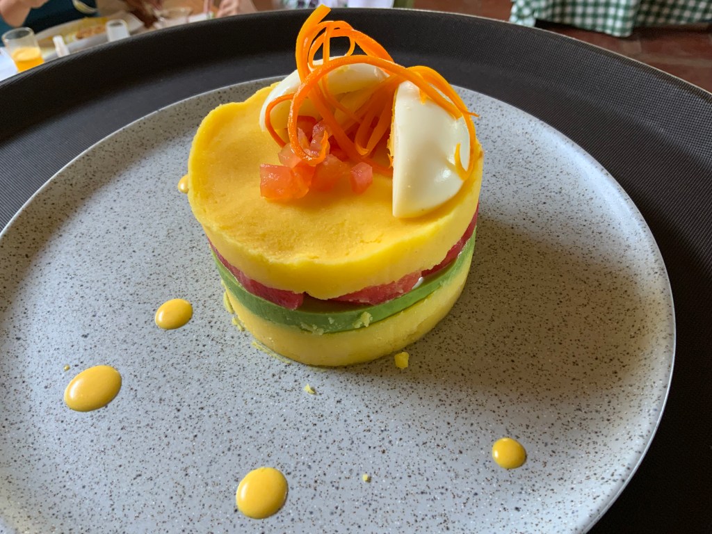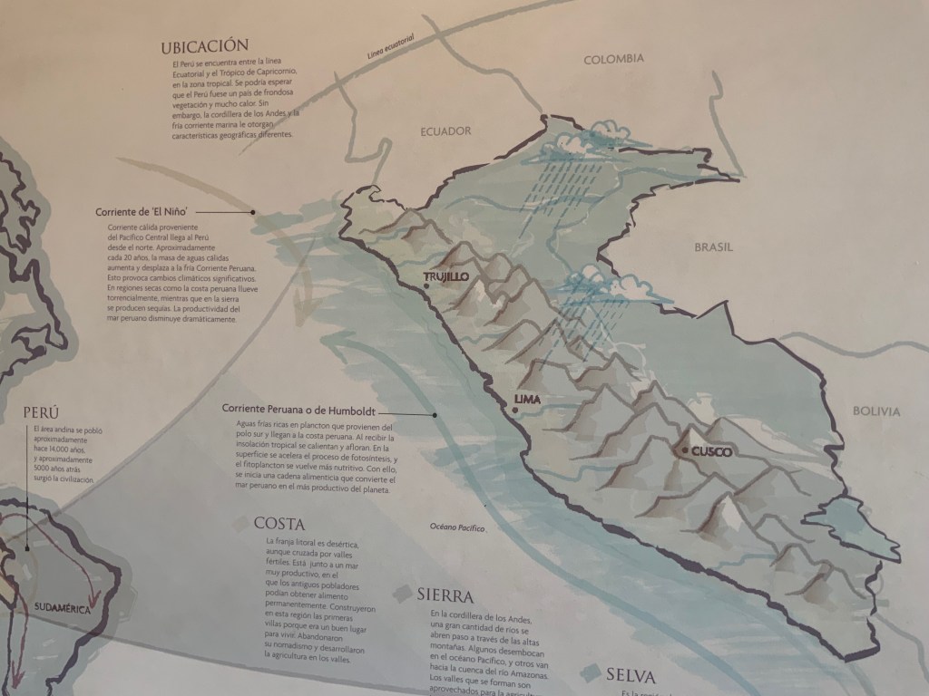 Jose said that COVID that the cooking school has been dead but is coming back to life now. We spent the afternoon learning about Peru’s culinary history and current cuisine from Jose who was a guide before he became a chef. While we were treated to appetisers and a tour of a market with local vegetables, Jose gave us an overview of the influences on Peruvian cuisine.