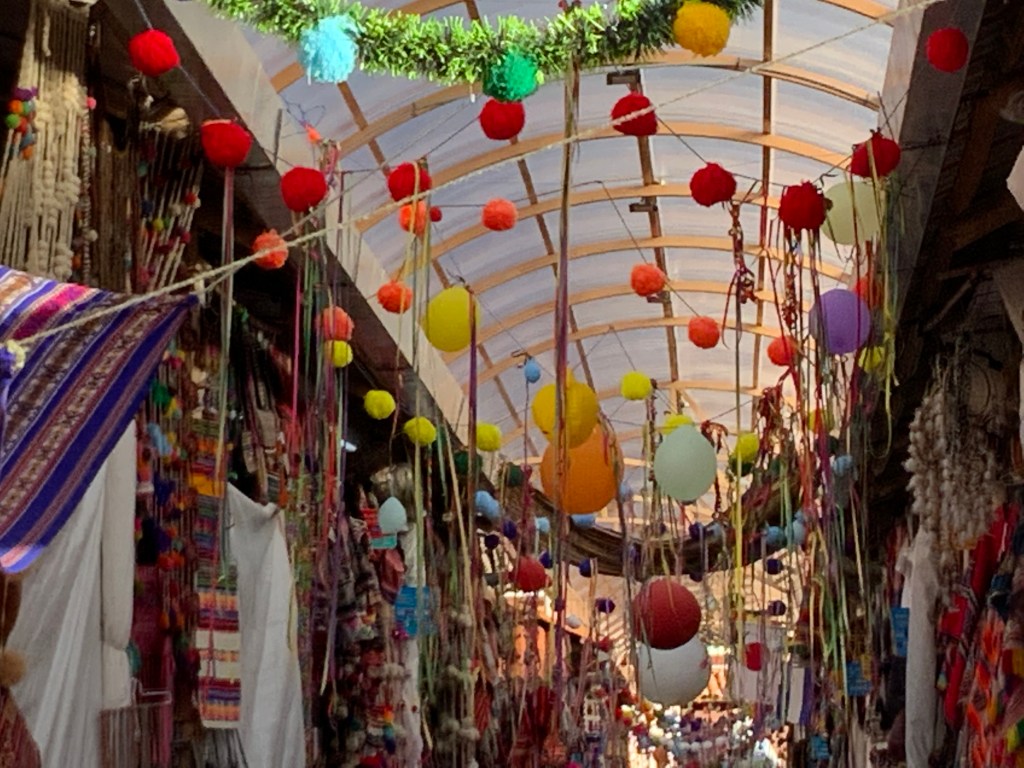 We then visited the nearby Museo Inka, focused entirely on the Incas and were finding that we were viewing some fo the same information and artifacts. Bill bought a belt with Peruvian colours and designs and I bought a baby alpaca scarf.