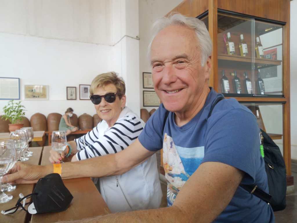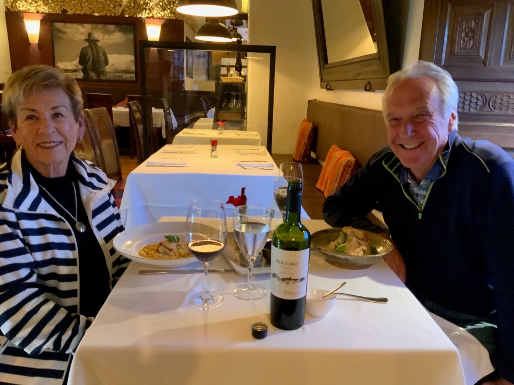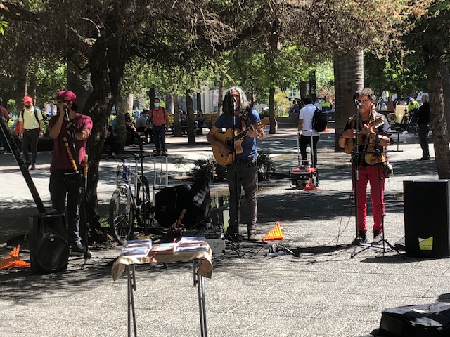 After a 10 hour and 15 minute direct flight from Toronto that was just the way we like it (uneventful), we landed at 10:40 am to line ups upon line ups: one to show Mobility Pass that showed that we had been already approved as having our full vaccinations and passed the PCR test at home; one to get our PCR tests done in Santiago; then passport control and then baggage. Our host, Alejandro, and driver, Luis, were waiting for us, took us to the hotel and arranged to meet us the next morning at 9:00 am. We had a delicious lunch in Cumbres hotel, went for a swim and walked the streets full of music, street vendors and had a drink.