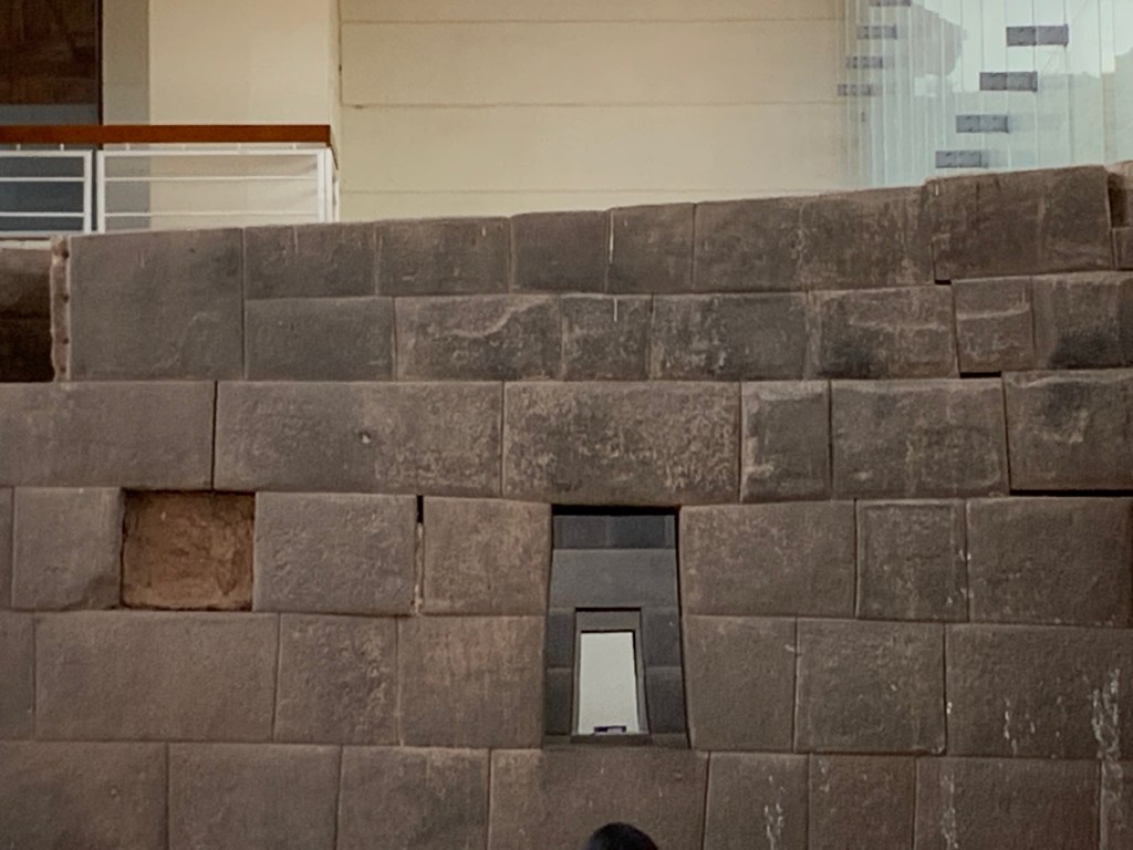 At 2:00 pm, we walked with Rosabeth through the cobblestone streets to the colonial Cathedral in the Plaza de Armas, then down to the Santo Domingo monastery, perched atop the most sacred of Incan sites, the Qoricancha temple of the sun.