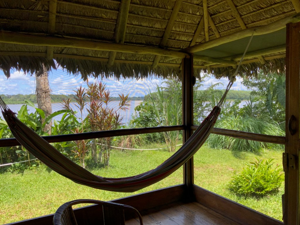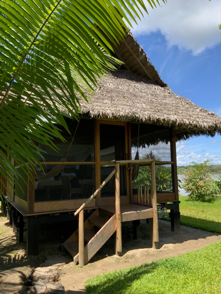 The Inkaterra team met us when we touched down at the small jungle airport, brought us to their Puerto Maldonado headquarters where we left our largest luggage… and then it was into the jungle by boat! After just 45 minutes along along the Madre de Dios River, we could see the stairway to the Inkaterra Reserva Amazonica lodge loom into sight. Staff were there ringing the bell with warm cloths and juice.