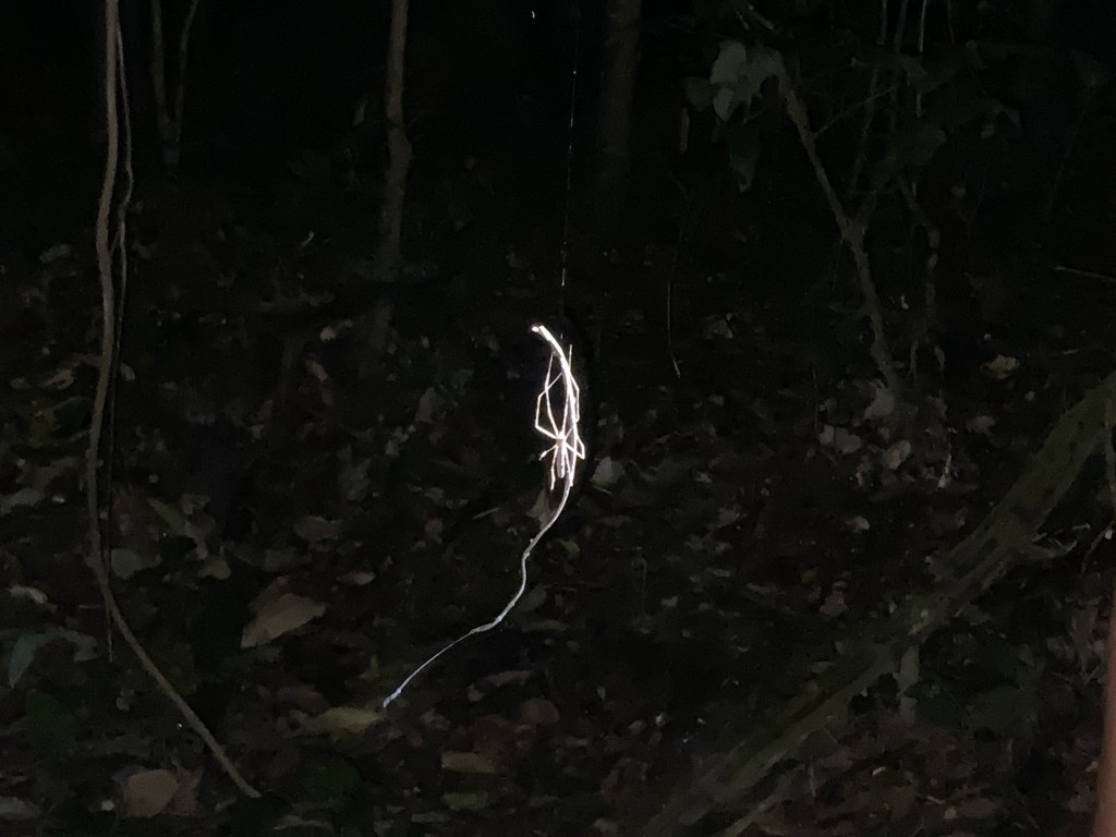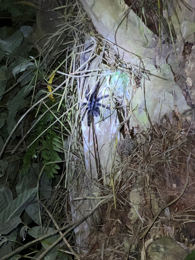 As the sun started to set, we went for a walk in the jungle and saw spiders, tarantulas and heard lots of noises.