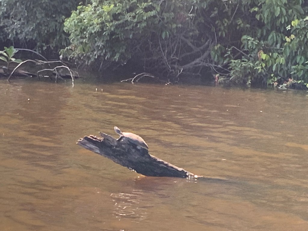We saw Capuchinm monkeys, side-neck turtles and black caimans (alligators).