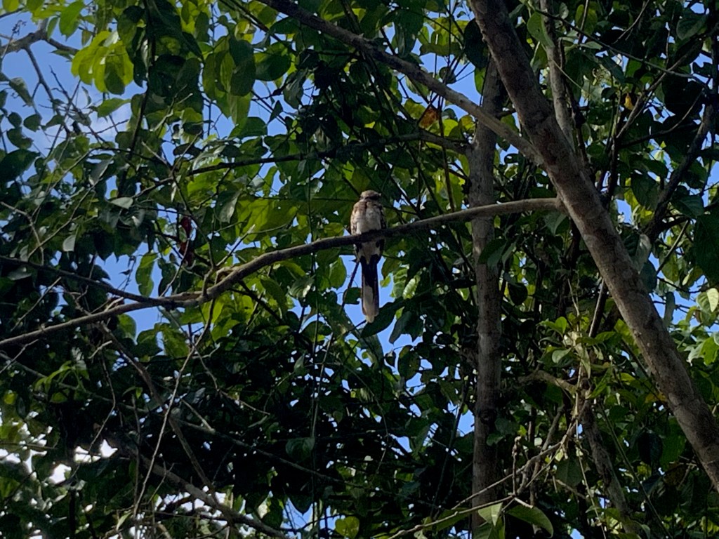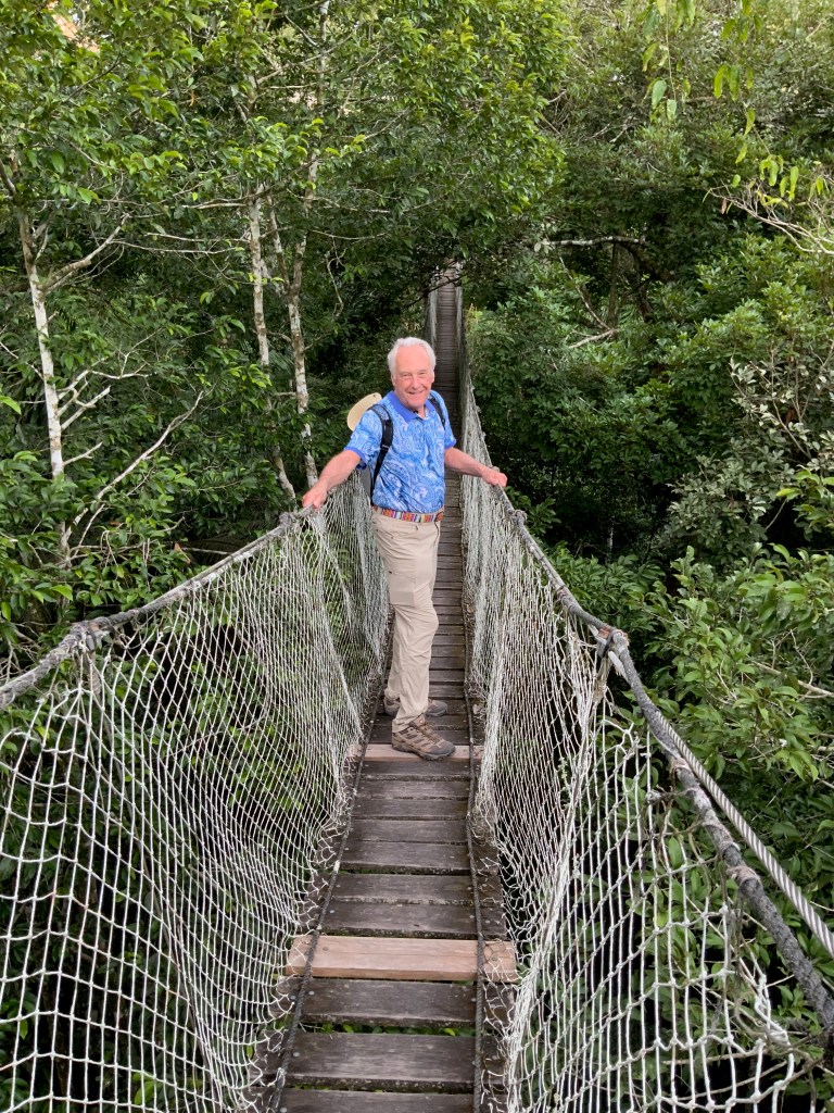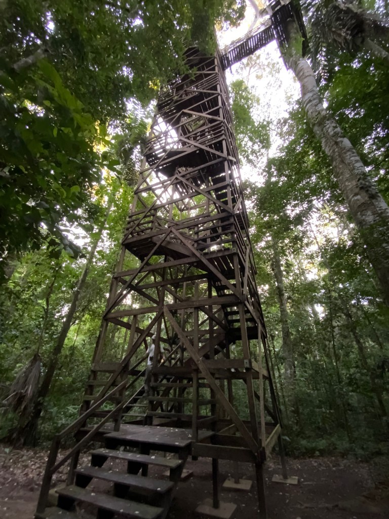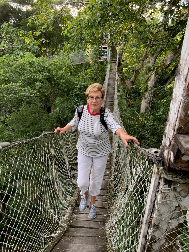 Walking on the bridges that stretch between the different platforms was a bit of a challenge but we both made it (only one on the bridge at a time and one person turned back); observing the jungle from above and seeing various bird species flying in the canopy or landing nearby was amazing.